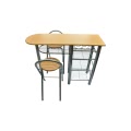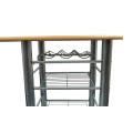 This kitchen / bar set is made of high quality wood in beech colour, which is easy to clean, and will blend well in any modern home environment. There are several storage shelves and a wine / bottle holder under the table, so that you can your things well-organized and well within reach. The steel frame contributes to the sturdiness of the table and the chairs. The chairs can be tacked under the table when not in use.