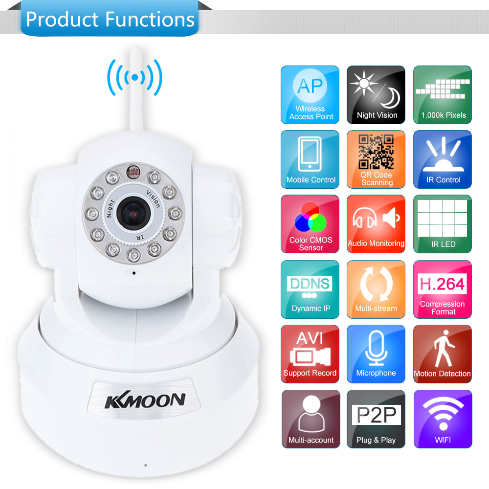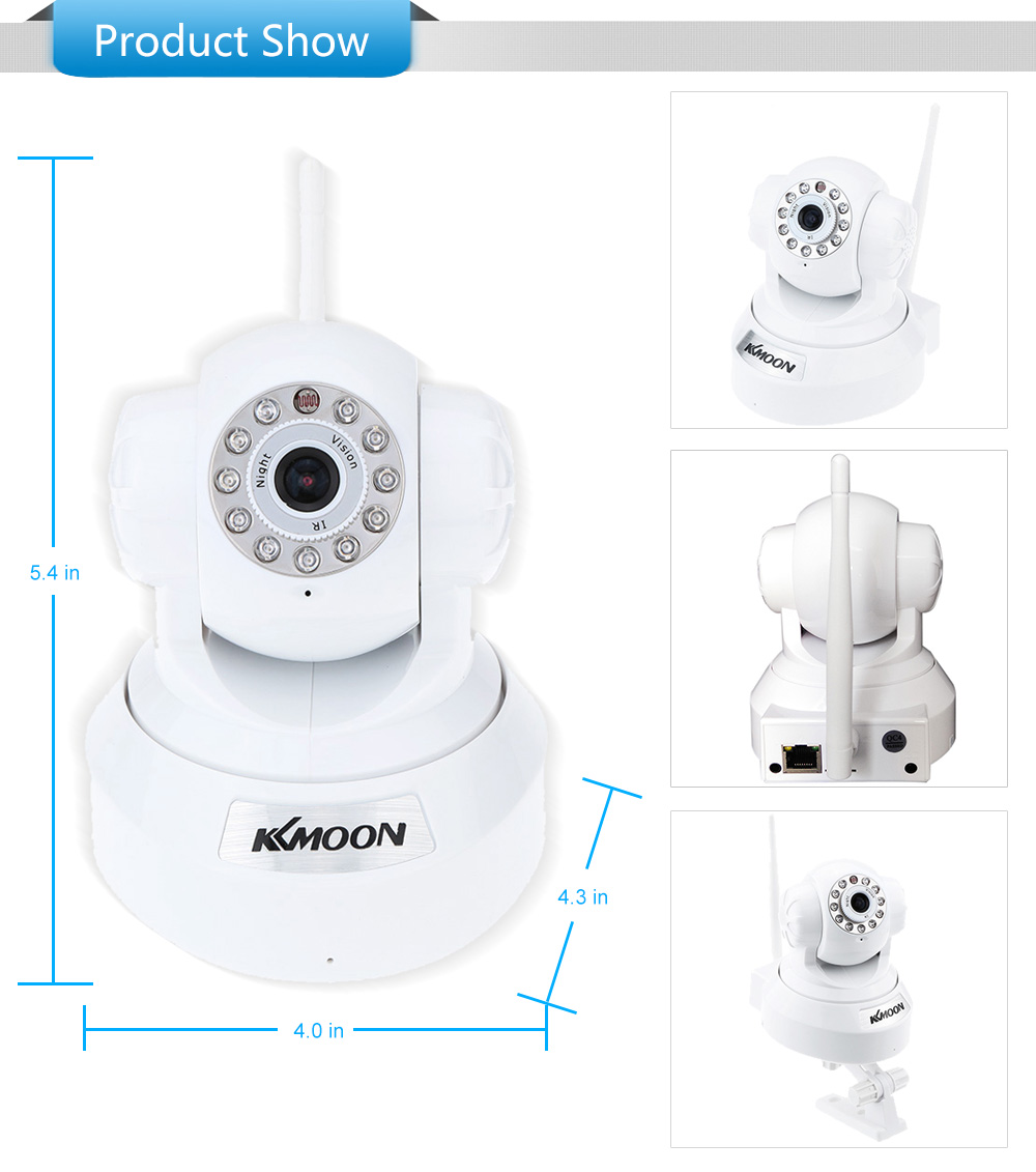 KKmoon® 720P HD H.264 Pan Tilt WiFi IP Webcam