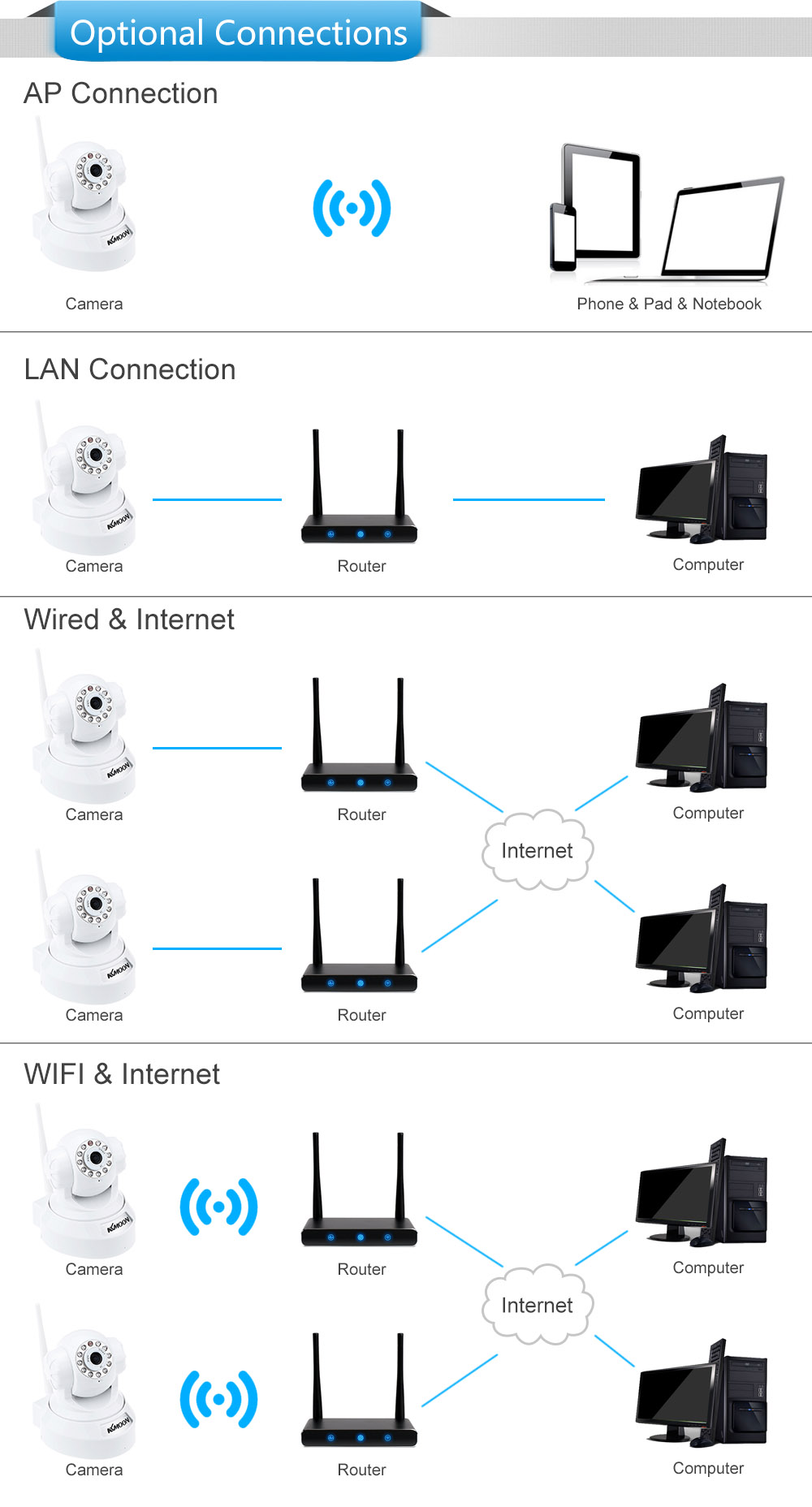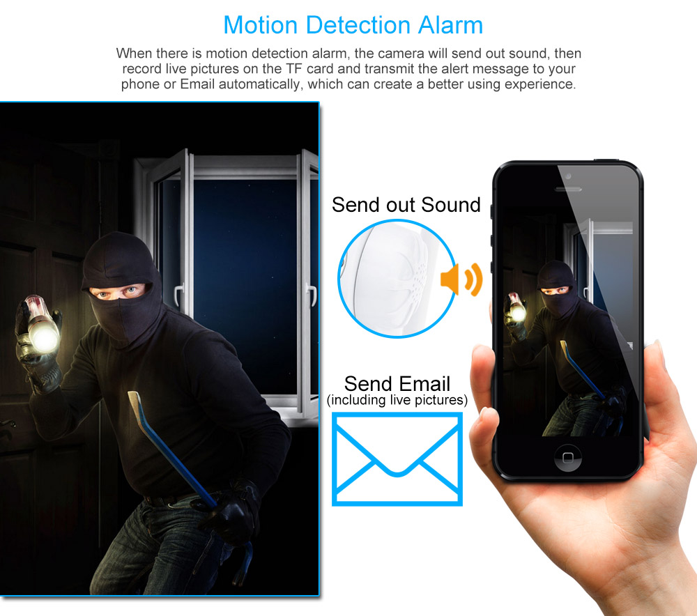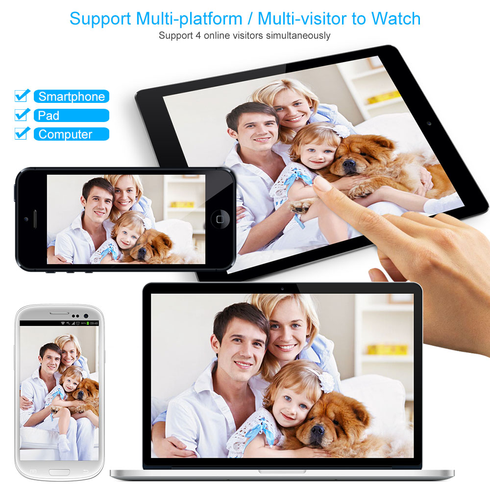 This IP Camera can send high-quality live video with sound through the Internet to a web browser anywhere in the world. Both wired and wireless network connections are available. Once you choose it, you will be amazed at its abundant features and richer functionality. From now on, you can record what happened in your life faithfully, vividly and permanently.